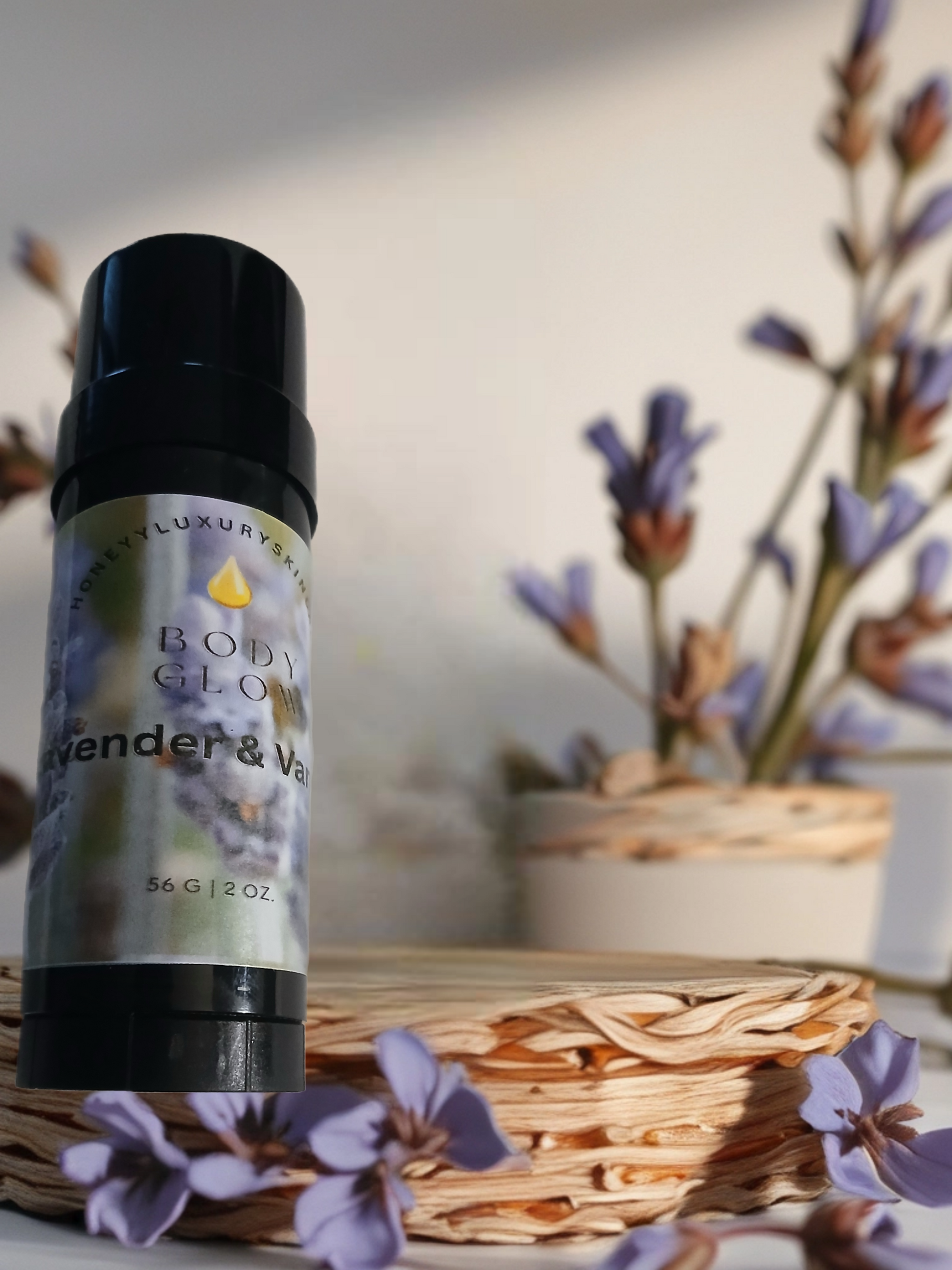 Indulge your skin with the enchanting blend of Lavender & Vanilla Body Glow. This 2 oz treat leaves a subtle glow while wrapping you in soothing lavender and sweet vanilla scents. Perfect for adding a playful, radiant touch to your glow-up routine!